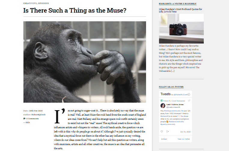 I wrote an opinion piece for A Writer’s Bookshelf, discussing the stereotypes of the creative genius and the muse. You can find the full article online here or read an extract down below: