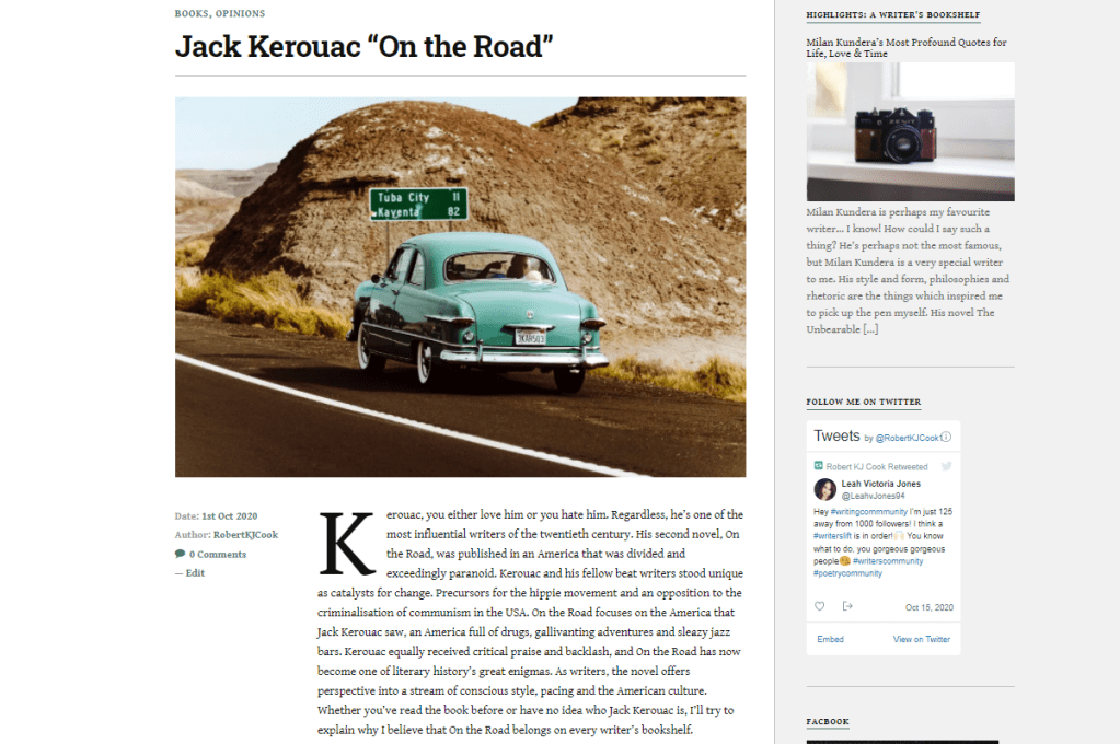 I wrote an opinion piece and breakdown of Jack Kerouac’s infamous novel “On The Road.” You can find an extract down below, but click here to view the whole article on my blog “A Writer’s Bookshelf”.
